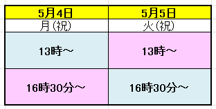 スケジュール 2026年5月4日(月)~5月5日(火祝)